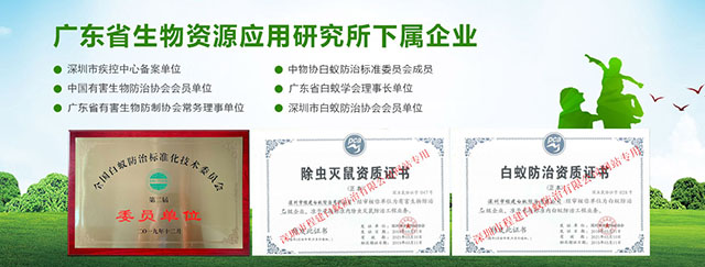 專注于徹底根治、防治結(jié)合,售后跟蹤服務,專業(yè)服務工程師有豐富實戰(zhàn)經(jīng)驗超過十年。持有專業(yè)資格證書認證:“有害生物防制服務機構服務能力證書B級”、“白蟻防治服務機構服務能力證書B級”所有員工持有“深圳市白蟻防治上崗證”和“深圳市除蟲滅鼠上崗證”,雙資格證上崗服務。榮獲過:“優(yōu)質(zhì)服務示范單位”、“白蟻防治服務信譽AAA級單位”、“深圳市白蟻防治先進單位”、“深圳市十大白蟻防治品牌”、“深圳市殺蟲公司”、“深圳市消殺公司”先進單位等榮譽。